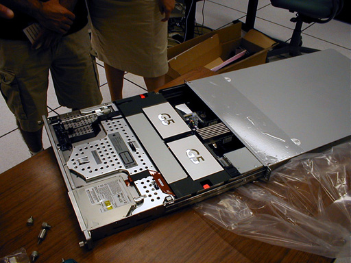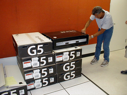 The first 8 computers under installation on 7/7/04: