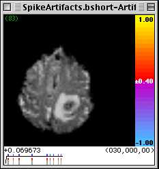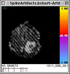 then navigate to the file 'Sample data:MGH types:Artifacts' , where you will find the file, 'SpikeArtifacts.bshort' This is a single slices from a particularly bad day of imaging (we reseated the analog to digital convertor boards and fixed the problem...).